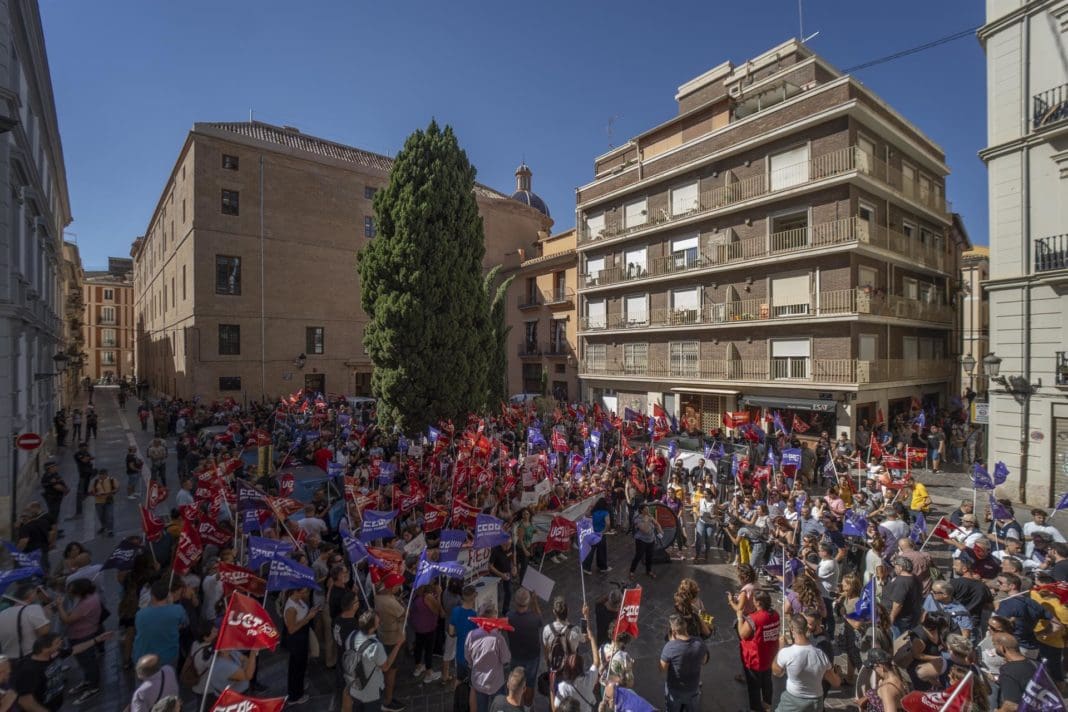 Los sindicatos mayoritarios, CCOO PV y UGT-PV, han protestado este jueves ante las sedes de la Confederación Empresarial Valenciana (CEV) en València, Alicante y Castelló de la Plana para reclamar a la patronal estatal CEOE y a los partidos políticos la reducción de la jornada laboral de 40 horas semanales a 37 horas y media para 2025. «Ni se va a romper España ni se va a producir ningún cataclismo», han aseverado.
