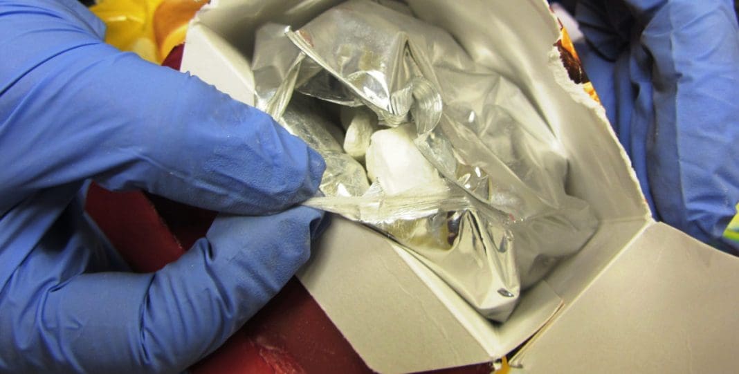En el registre practicat per la Guàrdia Civil a l’equipatge d’esta persona d’una forma més exhaustiva, s’observa que a l’interior d’uns envasos es troben més de 4 quilos d’una substància blanca. Posteriorment la prova amb el reactiu Cocatest va donar resultat positiu a cocaïna.