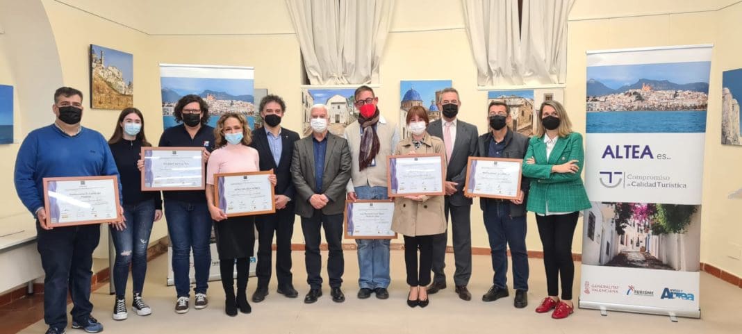 El secretario autonómico de Turisme, Francesc Colomer, ha entregado en Altea, junto con el alcalde de la localidad, Jaume Llinares, y la concejala de Turismo, Xelo González, los distintivos del Sistema Integral de Calidad Turística Española en Destino (Sicted) a seis entidades del municipio.