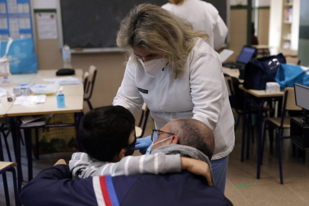 Los centros escolares han adaptado múltiples espacios como gimnasios, aulas, bibliotecas o salas de estudio para que los niños y niñas reciban la vacuna contra el coronavirus. Además, también se ha habilitado un espacio para la postvacunación y la atención, por parte del personal sanitario, de cualquier evento adverso que se pueda producir tras la vacunación.