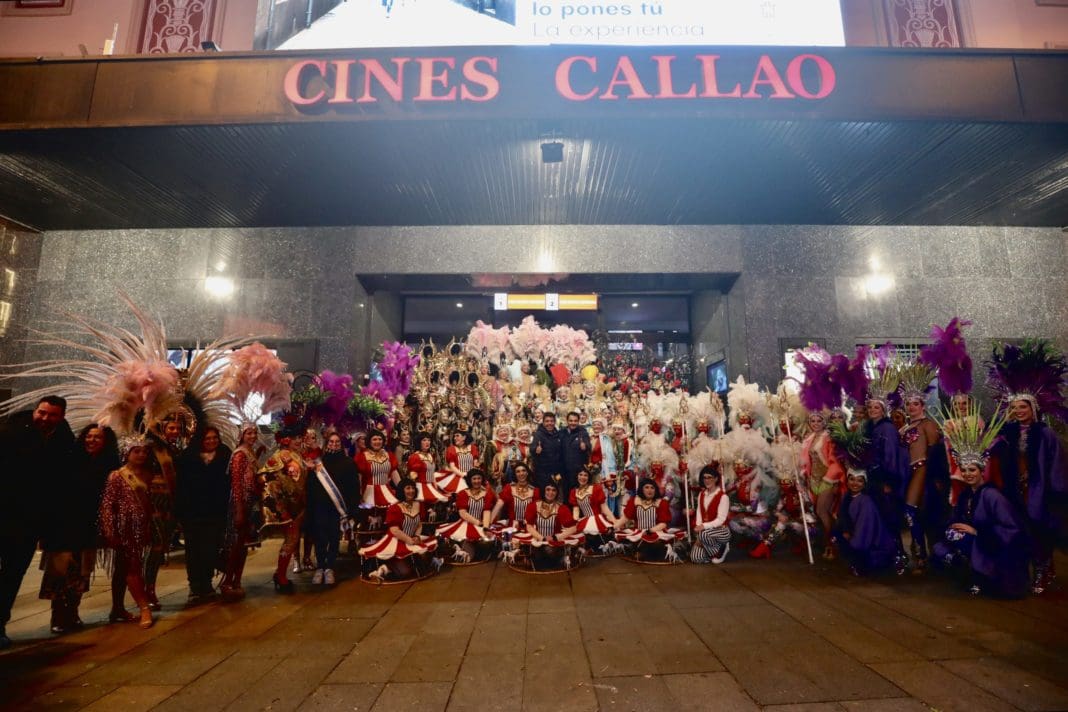 Diversas comparsas carnavaleras de la ciudad alicantina han recorrido algunas de las principales arterias de la capital de España para mostrar esta fiesta tradicional de la Costa Blanca a los cientos de madrileños y turistas que a esas horas transitaban por esta concurrida zona.