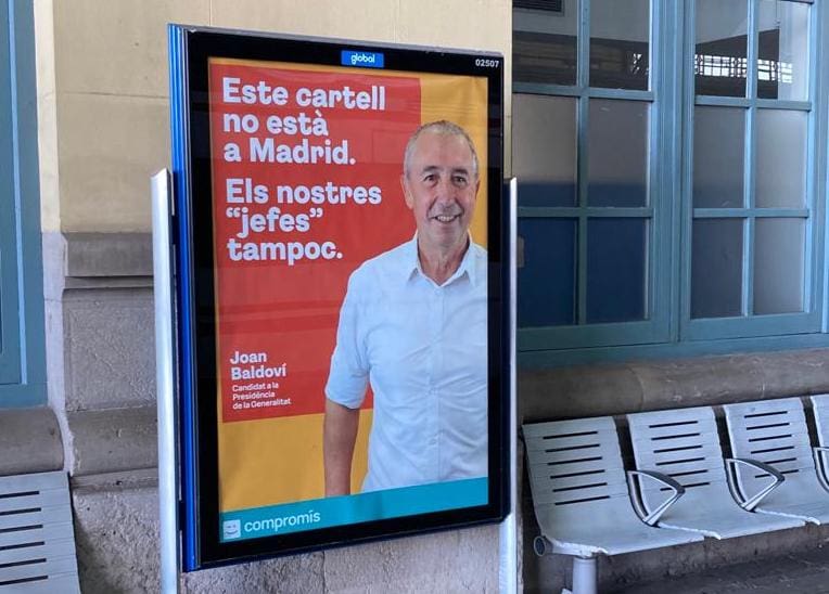 Compromís lanza una campaña con la imagen de Baldoví: ‘Este cartel no está en Madrid, nuestros jefes tampoco’