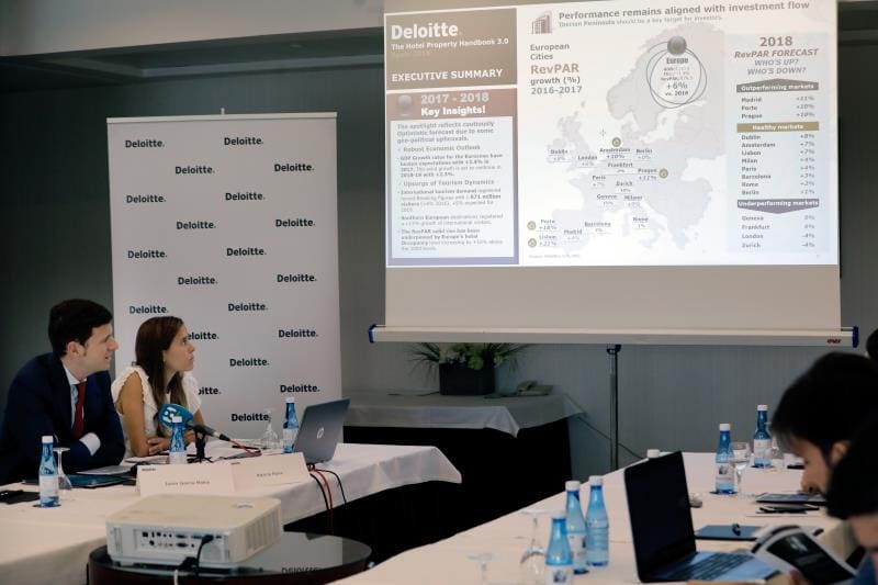 Estas són algunes de les dades més destacades de l’estudi sobre el mercat hoteler «The Hotel Property Handbook 3.0«, realitzat per la consultora Deloitte, que ha sigut presentat en roda de premsa pel responsable de l’àrea de Real Estigues Hospitality, Javier García-Mateo, i la consultora sènior del mateix departament, Patricia Plana.
