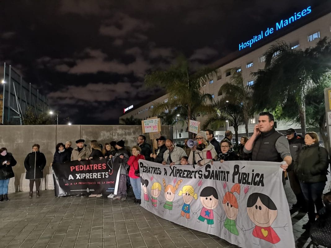 Associacions, col·lectius i AMPAS del municipi, en col·laboració amb l’Ajuntament de Manises, han participat hui en una concentració contra la retirada del servei de pediatria de Xiprerets. El lloc triat ha sigut novament l’Hospital de Manises, el mateix punt en què va finalitzar la marxa del passat 29 d’octubre i en la que van participar en el voltant 1.000 persones.