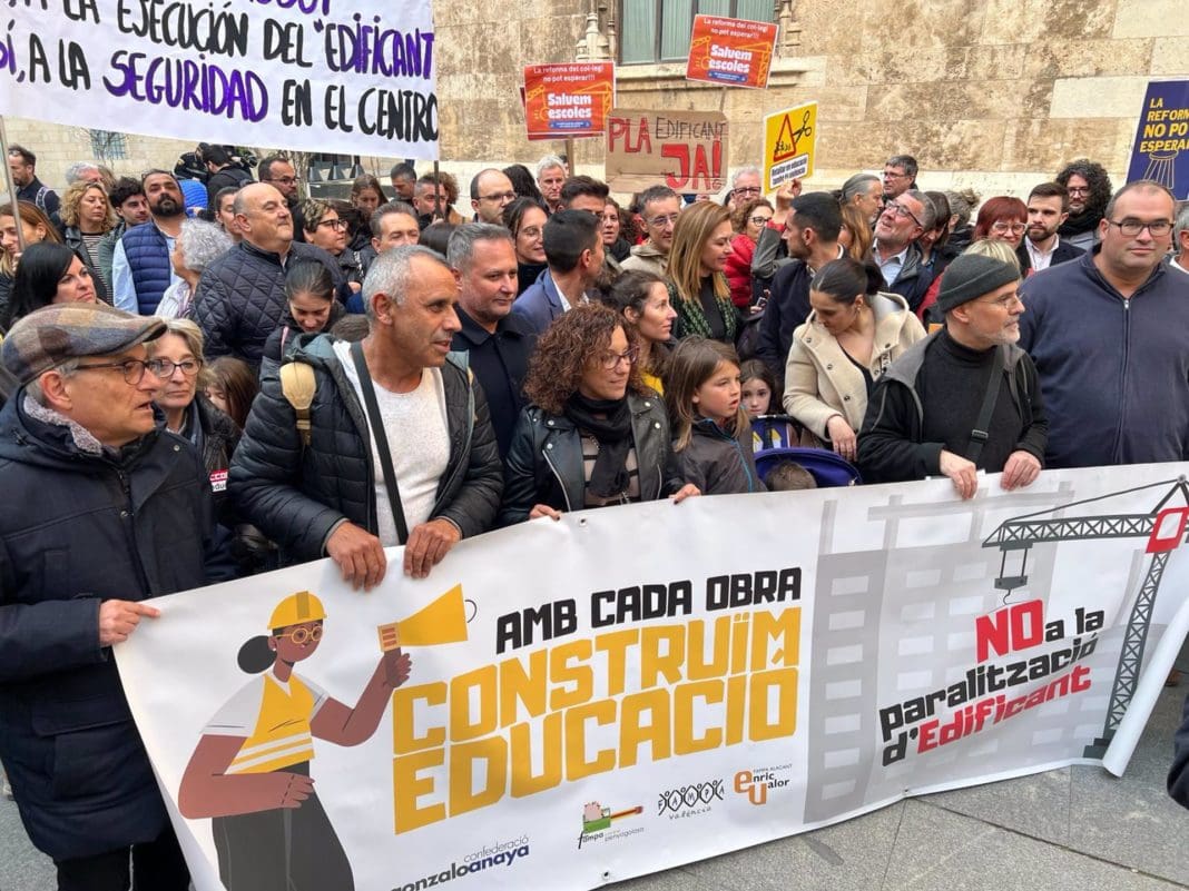 Una concentración celebrada este martes a las puertas del Palau de la Generalitat, en València, ha exigido a la Conselleria de Educación la «continuidad y agilidad» del Plan Edificant y ha advertido de que con la «paralización» de las obras de este programa los centros educativos están «en peligro».