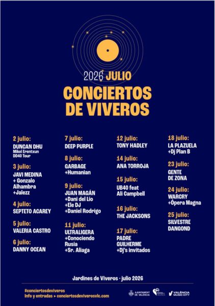 Un año más, Conciertos de Viveros se consolida como un escaparate de música en directo con propuestas de todo el mundo, combinando grandes giras internacionales con artistas nacionales y promoviendo la proyección de músicos valencianos emergentes.