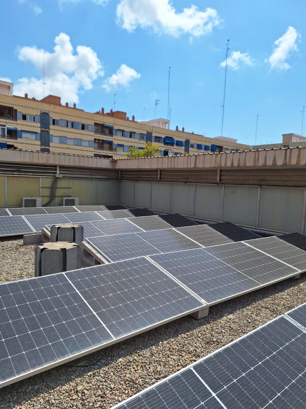 Es el caso de la pérgola fotovoltaica instalada este año en el Colegio Municipal de Benimaclet, destinada al autoconsumo energético, con una inversión de 162.000 euros. La energía generada por esta instalación está permitiendo cubrir entre el 60 % y el 80 % de las necesidades de consumo energético del colegio, con la consiguiente reducción de emisiones de CO₂.