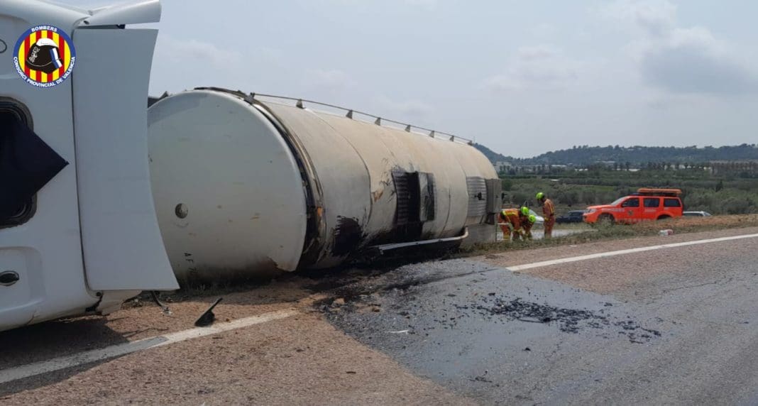 Han intervenido bomberos de los parques de Paterna y Chiva, sargento de Paterna y oficial de guardia. Al siniestro ha volcado un camión cuba que transportaba mosto, produciéndose un derrame de unos 20.000 litros.