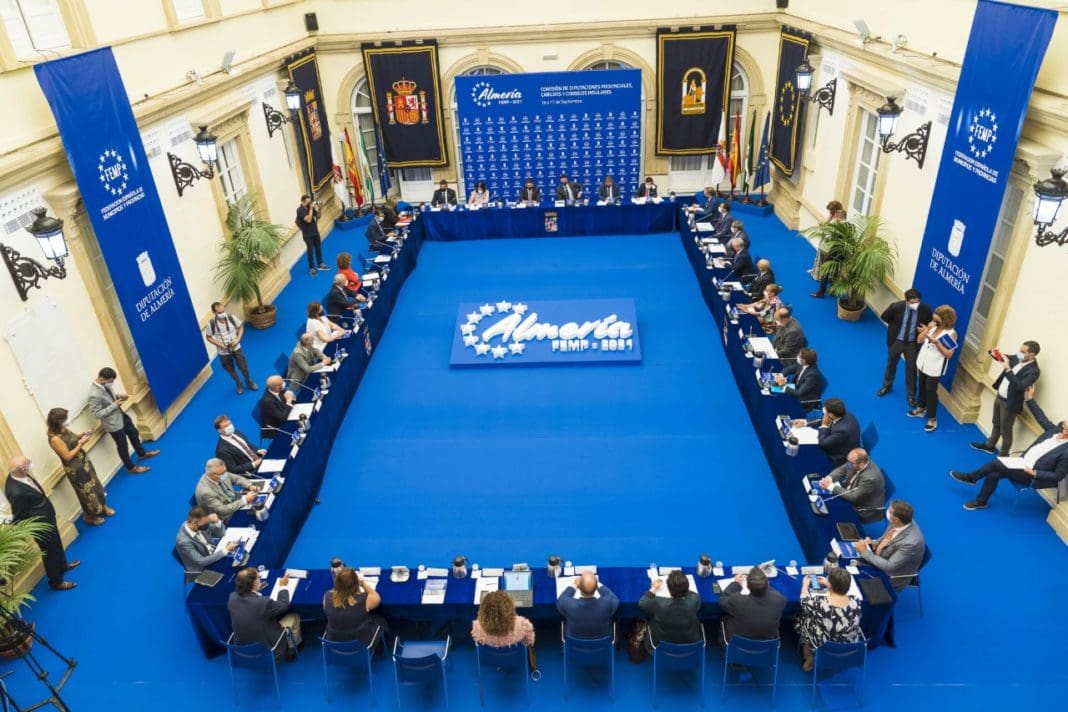 El presidente Gaspar ha participado en Almería en la Comisión de Diputaciones Provinciales, Cabildos y Consejos Insulares, organizada por la Federación Española de Municipios y Provincias (FEMP), en la que se ha abordado principalmente la distribución de los fondos de recuperación europeos y el Plan de recuperación, transformación y resiliencia de la economía española tras la pandemia.
