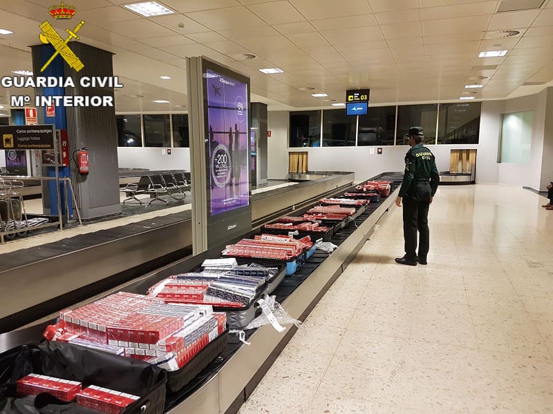 Dins dels controls establerts per la Guàrdia Civil per evitar l’escomesa d’infraccions de contraban, en el dia d’ahir 13 de març es van realitzar inspeccions en les maletes de cinc passatgers procedents de Luanda via Lisboa amb destinació València, trobant-se en el seu equipatge multitud de paquets de tabac.