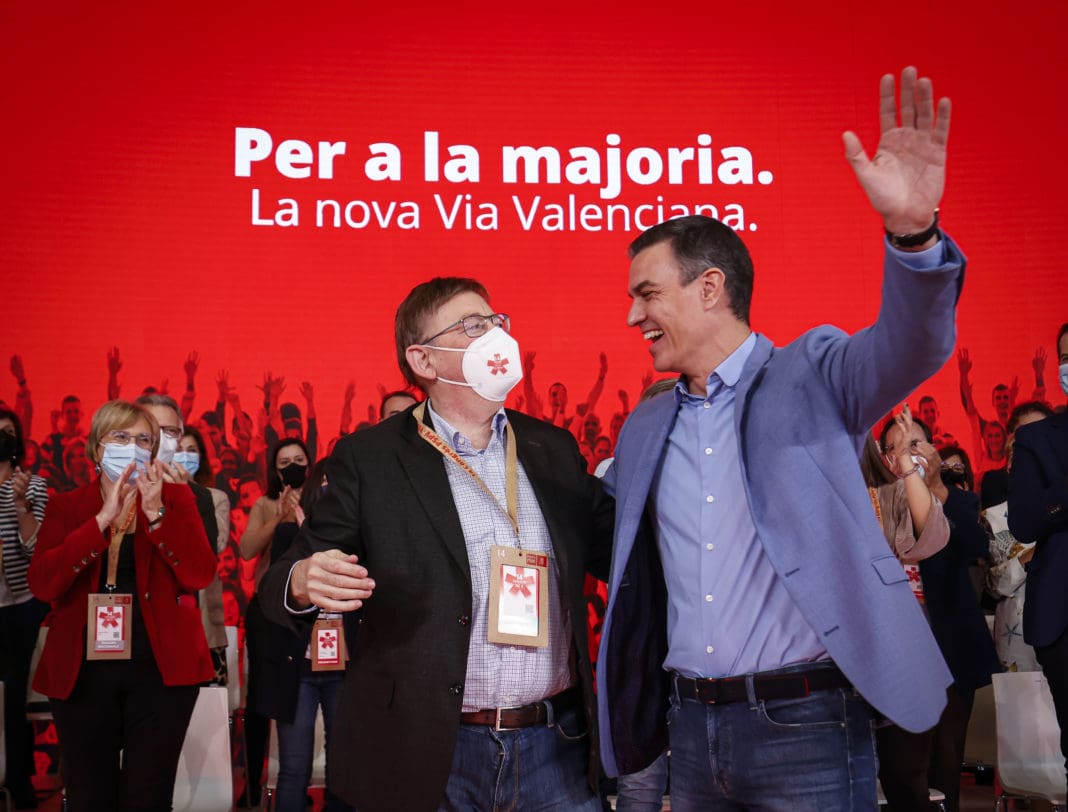 Además, durante su intervención el secretario general del PSOE ha agradecido la «lucidez» del president Ximo Puig en su gestión de la pandemia. «Siempre antepuso el interés general, incluso en debates complejos», ha destacado Sánchez, que se ha referido también a la apuesta del socialismo valenciano por la cogobernanza: «Es un modelo que me parece importante reivindicar porque, gracias al trabajo de todos y todas y, sobre todo, del president Ximo Puig, se protegió la salud pública, el tejido productivo y el empleo».
