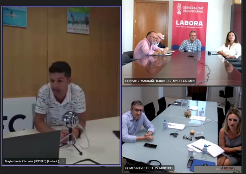 El conseller de Educación, Universidades y Empleo, José Antonio Rovira, y la consellera de Turismo, Industria, Innovación y Comercio, Nuria Montes, han mantenido un encuentro con la dirección de la Asociación empresarial hotelera y turística de la Comunidad Valenciana (Hosbec) y responsables de la Dirección General de Labora y Trabajo con el objeto de trasladar el apoyo del Consell «ante la situación que está sufriendo uno de los sectores más estratégicos para la Comunitat Valenciana”.