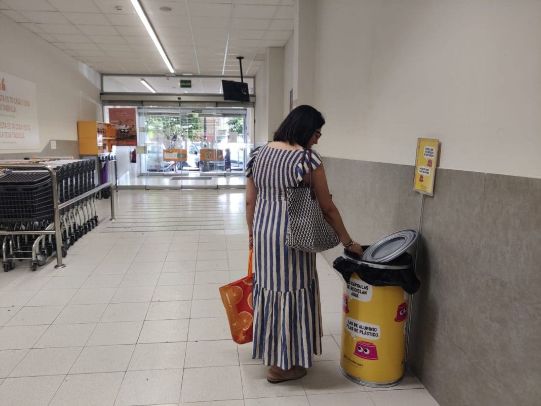 El contenedor de Circularcaps está ubicado a la entrada de la tienda, junto al contenedor de las pilas que ya se reciclan en Consum. Solo se pueden reciclar allí las cápsulas de aluminio y plástico, no las compostables, que se reciclan en el contenedor de orgánico.
