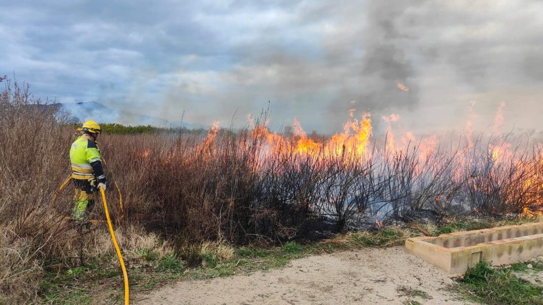 El fuego se declaraba a las 13.38 horas de este miércoles en el camí assagador-Marjal dels Moros de Sagunt, que en principio se había considerado como incendio de vegetación en Puçol y a las 14.16 horas se reclasificaba como incendio forestal en el término municipal de Sagunt.