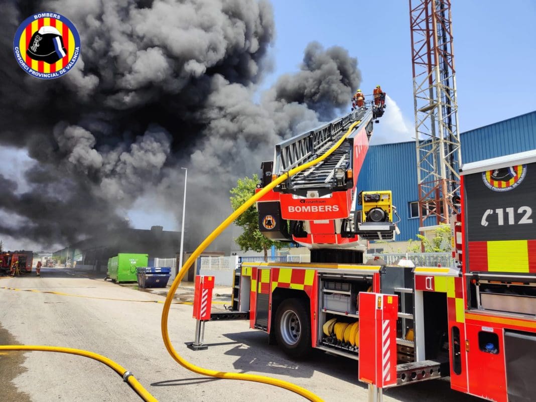El Consorcio de Bomberos de València ha dado por controlado a las 17:56 horas de ayer el incendio en una empresa de reciclaje de plásticos ubicada en la calle Fogaders del polígono industrial de Riba-roja de Túria.