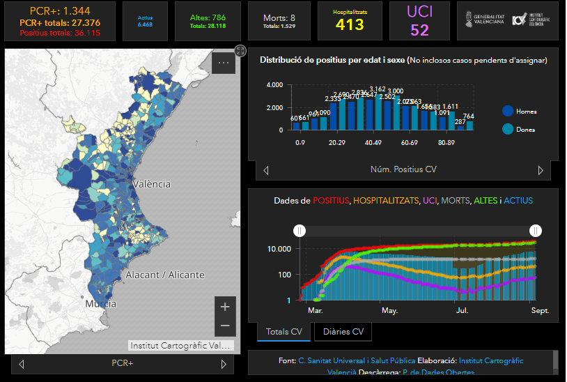 Hui dia, hi ha algun cas positiu en 45 residències de majors (4 a la província de Castelló, 16 a la província d’Alacant i 25 a la província de València), 6 centres de persones amb diversitat funcional (2 a la província de Castelló, 1 en la d’Alacant i 3 en la de València) i 4 centres de menors (1 a la província de Castelló, 2 a la província d’Alacant i 1 a la província de València).