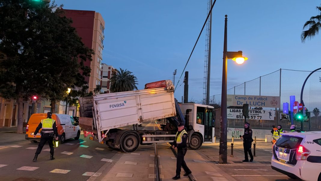 Las líneas 4 y 6 de tranvía han quedado temporalmente fuera de servicio en el tramo comprendido entre Tarongers y Doctor Lluch después de que un camión con remolque se haya enganchado en la catenaria.