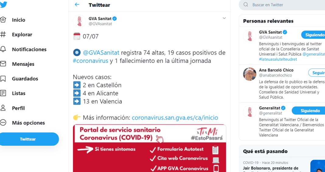Després de sis dies sense víctimes mortals per coronavirus a la Comunitat Valenciana, hui la Conselleria de Sanitat ha comunicat una mort en les últimes 24 hores. A més, s’han registrat 19 nous casos.