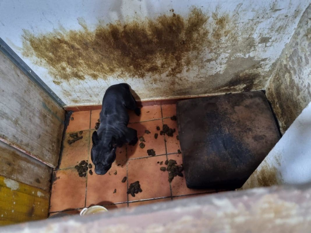 Al entrar en la vivienda, los policías vieron que un perro de raza potencialmente peligrosa estaba en un habitáculo pequeño lleno de excrementos y su estado «denotaba que llevaba tiempo sin salir del recinto». Además, en los recipientes no tenía ni comida ni agua.