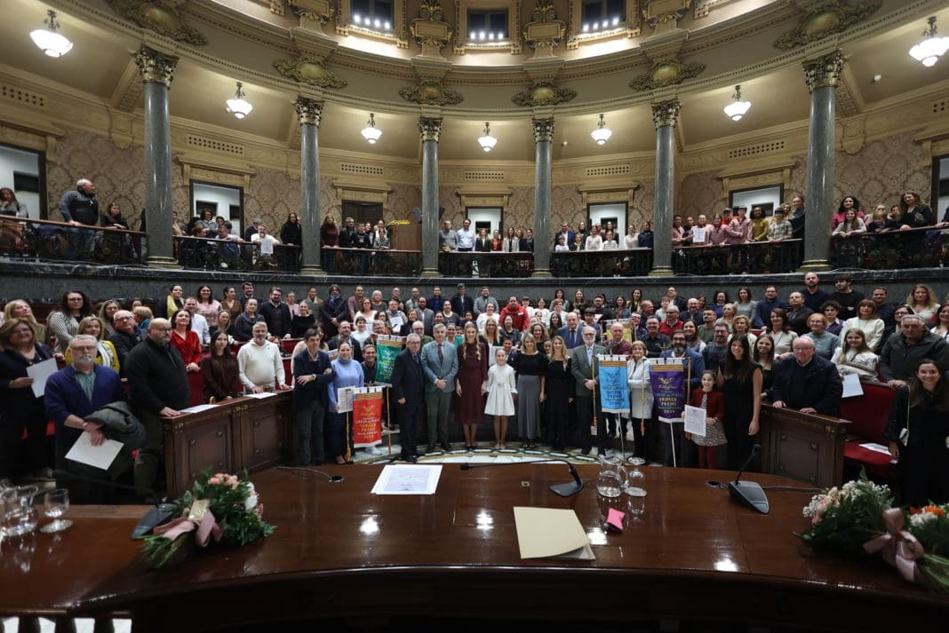 El Hemiciclo del Ayuntamiento de València se ha convertido en el escenario de la entrega de los premios del concurso de las Cruces de Mayo 2024 que organiza Lo Rat Penat con el patrocinio y colaboración del Ayuntamiento de València y que este año ha contado con la participación de 85 cruces, realizadas por asociaciones culturales, parroquias, comisiones falleras y festivas y otras entidades e instituciones varias.