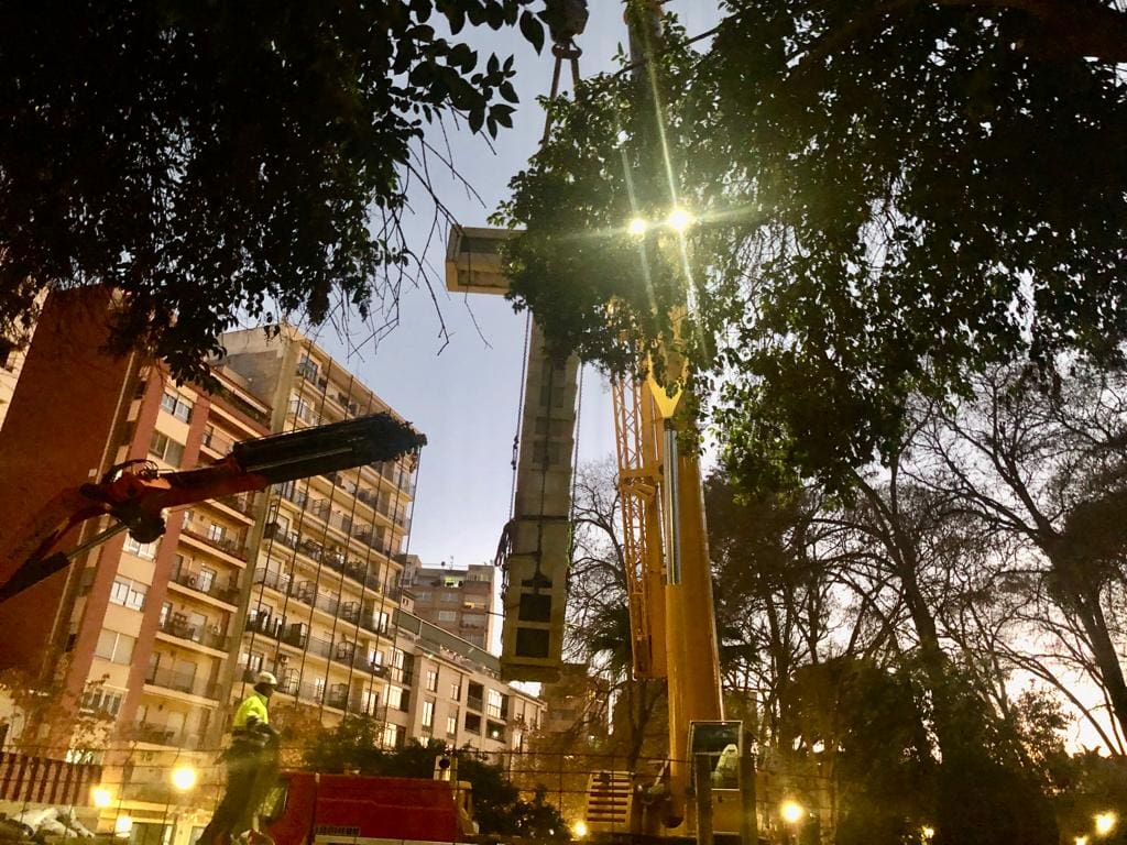 Minutos después de que se encendieran las luces de las farolas, por fin la grúa ha podido elevar el monumento y depositar la cruz en el camión tras una tensa espera y con un arranque de aplausos de las personas que han esperado pacientemente este momento.