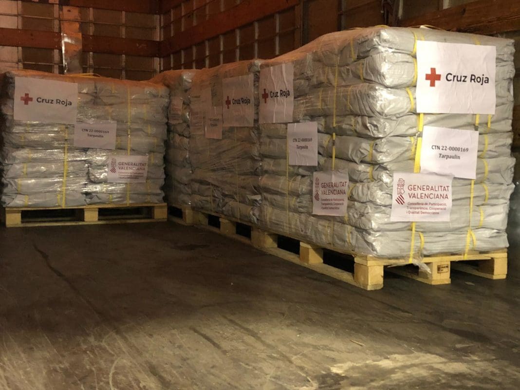 En total, Cruz Roja enviará desde los diferentes almacenes logísticos un total de 5.183 sets de cocina familiar para 5 personas, 9.900 mantas, y 15.985 toldos plásticos para aislar de la lluvia y el frío, valorado en más de medio millón de euros.