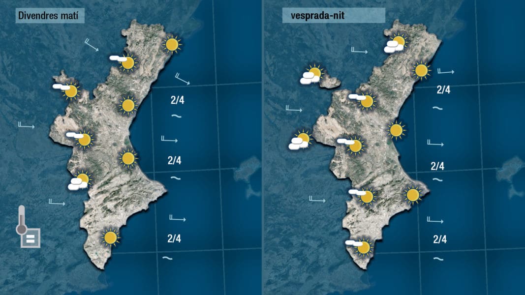 Durante la noche y madrugada el frente se adentrará dentro del mar y notaremos como el ambiente es más fresco al cruzar la Comunitat, la masa de aire más fría que siempre va detrás de un sistema frontal.