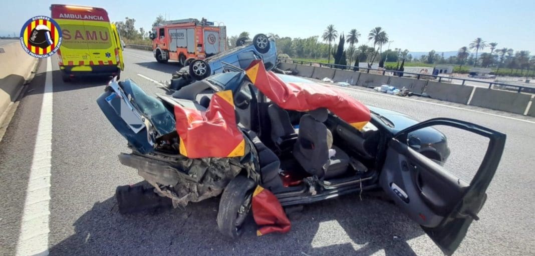 El accidente se produjo sobre las 15:41 horas por causas que se están investigando en el kilómetro 370 de la A-7, a la altura de L’Alcúdia, y hasta el lugar se movilizaron dos SAMU y un SVB.