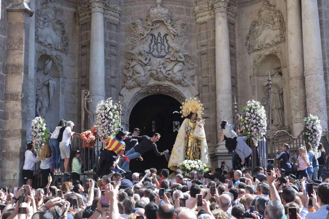 Seguidamente, a las 10.30 h, se iniciará el traslado de la imagen peregrina de la Mare de Déu, desde la Basílica de la Virgen hasta la Catedral, donde se celebrará, a las 12:00 horas, la solemne Misa Pontifical, también presidida por el Arzobispo y concelebrada por el Cabildo Catedralicio. Un momento en el miles de valencianos y valencianas lanzan muestras de cariño a la Geperudeta.