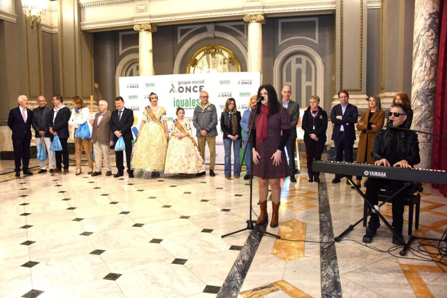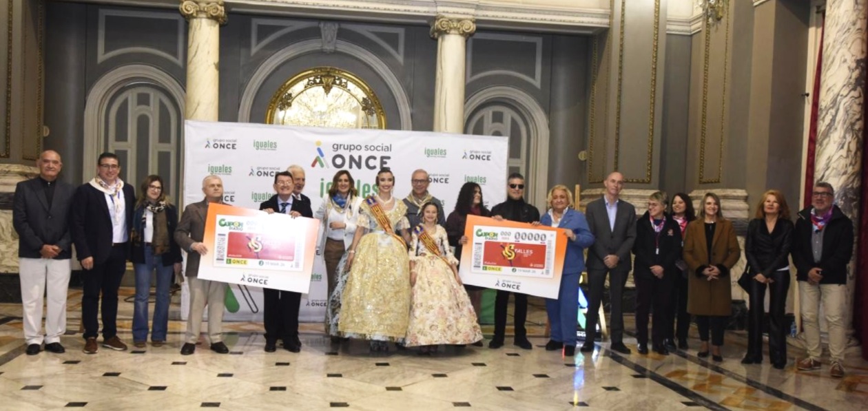 La presentación del cupón ha contado con la participación de la alcaldesa de València, María José Catalá, junto a las Falleras Mayores de València y el director general de la ONCE, Ángel Sánchez, acompañados por representantes del tercer sector, administraciones públicas y entidades de la ciudad.