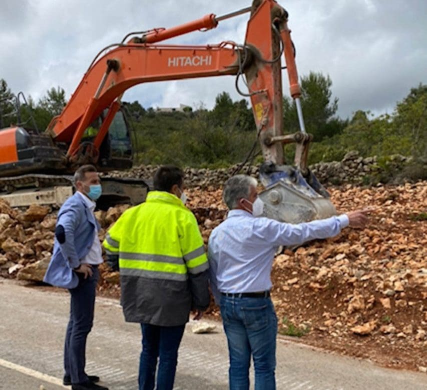 El diputado de Carreteras, Alejandro Morant, ha visitado la vía, acompañado por el alcalde de Llíber, José Juan Reus, para conocer el estado de las obras que, tal y como ha avanzado, estarán finalizadas en un plazo de cinco meses aproximadamente después de que la aparición de roca en el terreno obligará a paralizarla durante un tiempo.