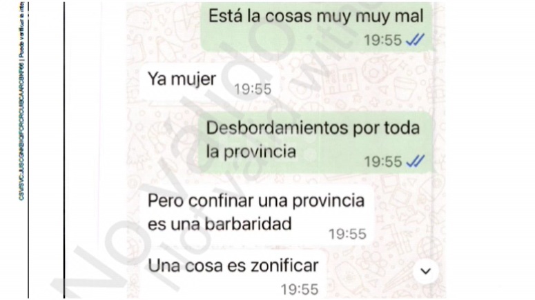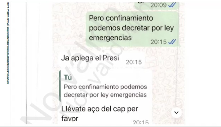 La comunicación por WhatsApp entre ambos se interrumpe hasta las 19:54 horas, cuando Cuenca se dirige a la consellera: «Salo, de confinar nada, por favor. Calma», en respuesta posiblemente a lo planteado en una conversación telefónica anterior entre ambos.