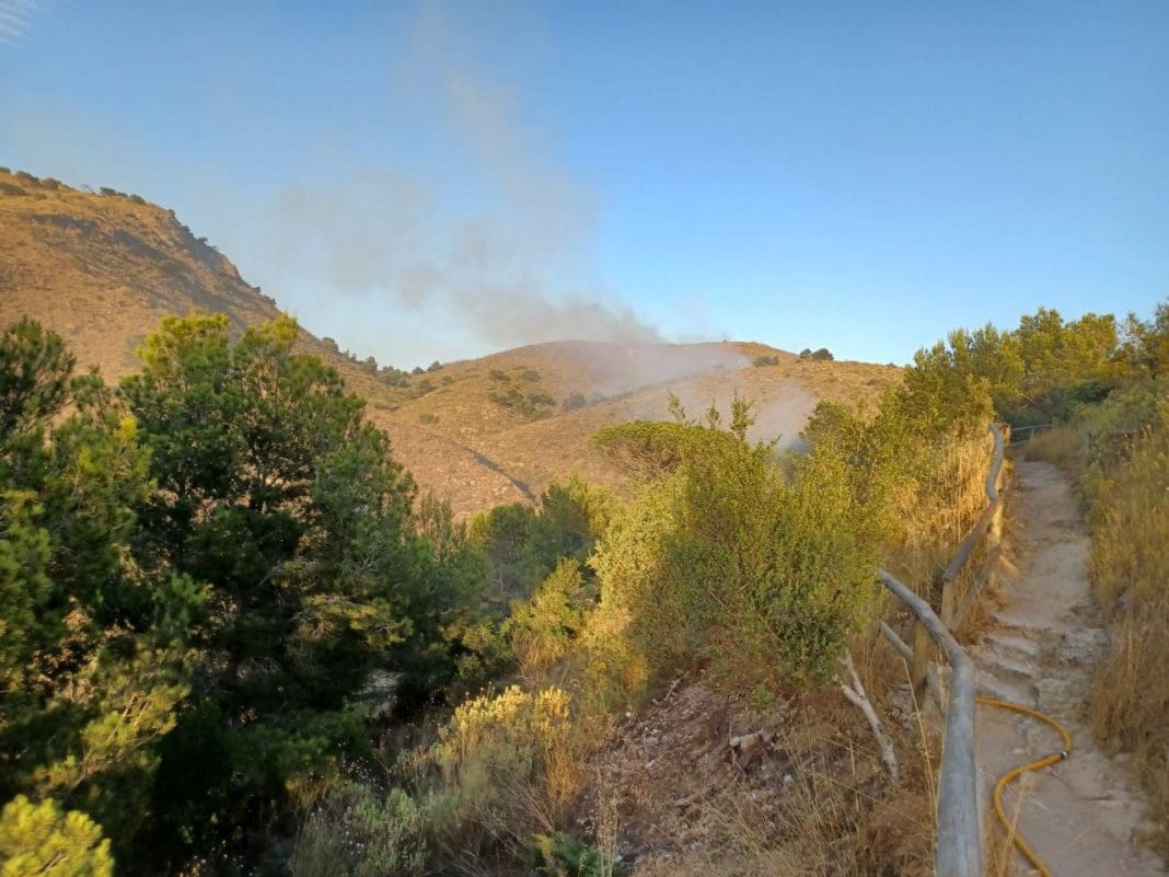 Efectivos del Consorcio Provincial de Bomberos de Alicante y Bomberos Forestales están peleando codo con codo para sofocar un incendio en la Sera Gelada. El foco del incendio se encuentra en la zona de la Cruz de Benidorm, el aviso se dio en torno a las 8 de la tarde.