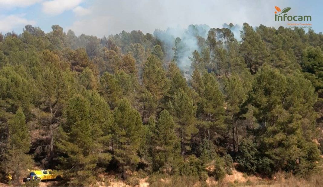 El incendio, en el municipio de La Pesquera, en la comarca de la Manchuela de Cuenca. Es una zona limítrofe con la Comunitat Valenciana.