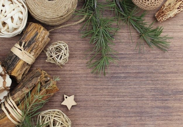 La decoración se puede completar por el resto del hogar con velas, cestas llenas de piñas naturales, macetas con flores de pascua, ramos de eucalipto con flores y jarrones de cristal con bolas doradas y estrellas plateadas.