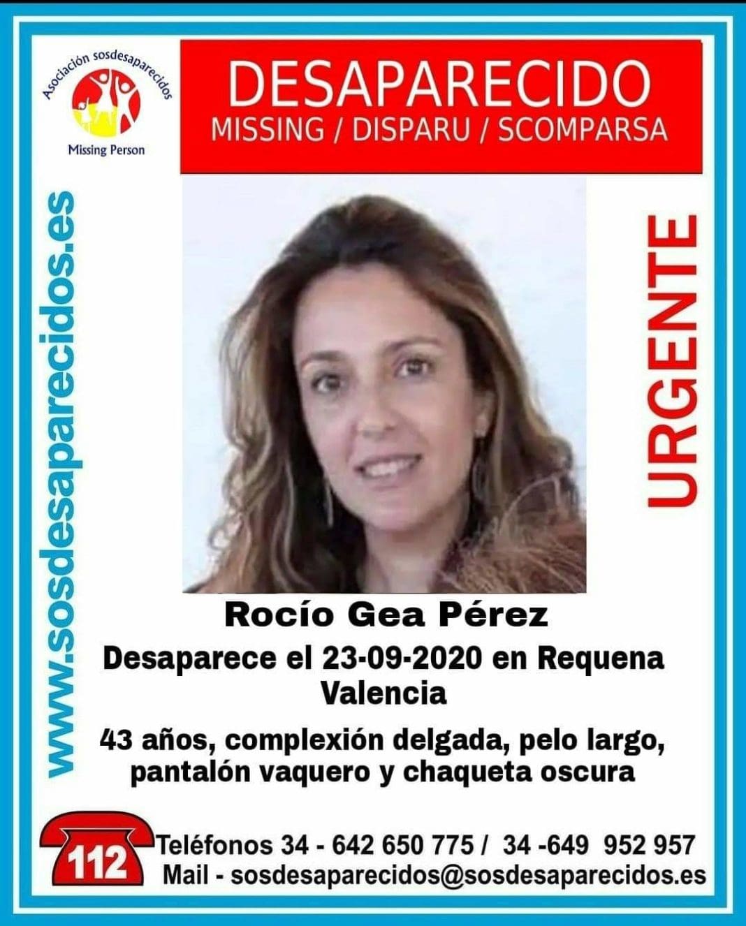 La Guàrdia Civil cerca a Rocío Gea Pérez, una dona de 43 anys que ha desaparegut este dimecres, 23 de setembre, quan anava camí a un enterrament en la localitat de Requena.