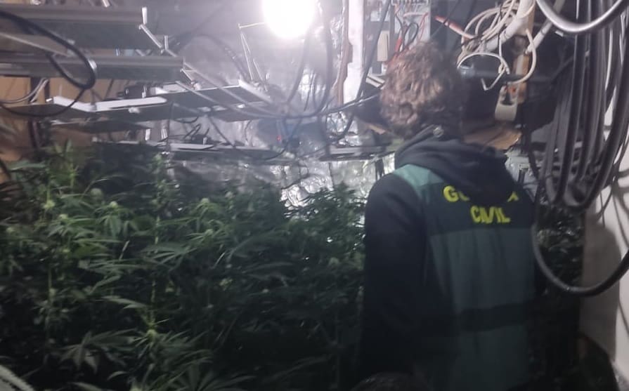 El 19 de febrero, se llevó a cabo la entrada y registro en su domicilio, donde fueron incautadas un total de 1.095 plantas de cannabis, con un peso aproximado de 240 kilogramos, así como 174 gramos de cogollos preparados y envasados para su distribución. Además, se hallaron dos piedras de cocaína con un peso total de 25 gramos y 1.020 euros en efectivo.