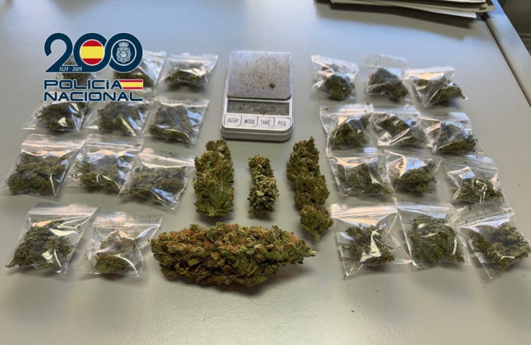 Fruto de las diversas pesquisas policiales, se localizó el inmueble desde el que el sospechoso llevaba a cabo las ventas de marihuana, siendo este identificado y llevándose a cabo un registro domiciliario en el que se incautaron más de 50 gramos de marihuana dosificados para su venta además de una báscula de precisión. El responsable fue detenido como presunto autor de un delito contra la salud pública por estos hechos.