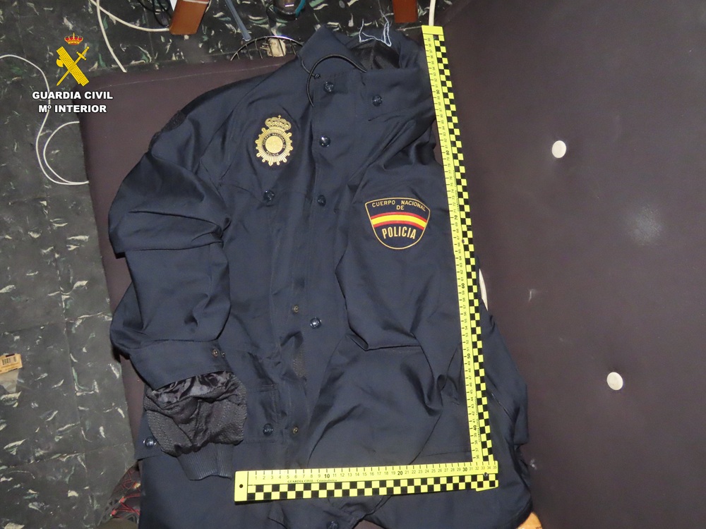 Durante el registro también hallaron prendas de uniformidad del Cuerpo Nacional de Policía, pasamontañas y dispositivos de transmisión que, según la investigación, podían emplearse de forma fraudulenta para simular funciones policiales.