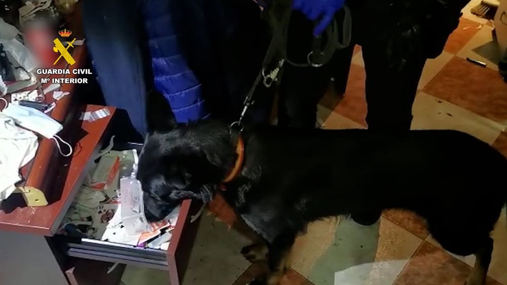 Durante la actuación se aprehenden más de 200 gramos de cocaína, más de 180 de marihuana y más de 21.000 euros en billetes de diferente cantidad. También se incautan cinco armas simuladas (dos de aire comprimido, dos simuladas y una detonadora). Igualmente se intervienen varios botes con productos químicos utilizados para la adulteración de las sustancias prohibidas y la elaboración de la droga y materiales de pesaje, embalaje y precintado para la distribución de dosis.