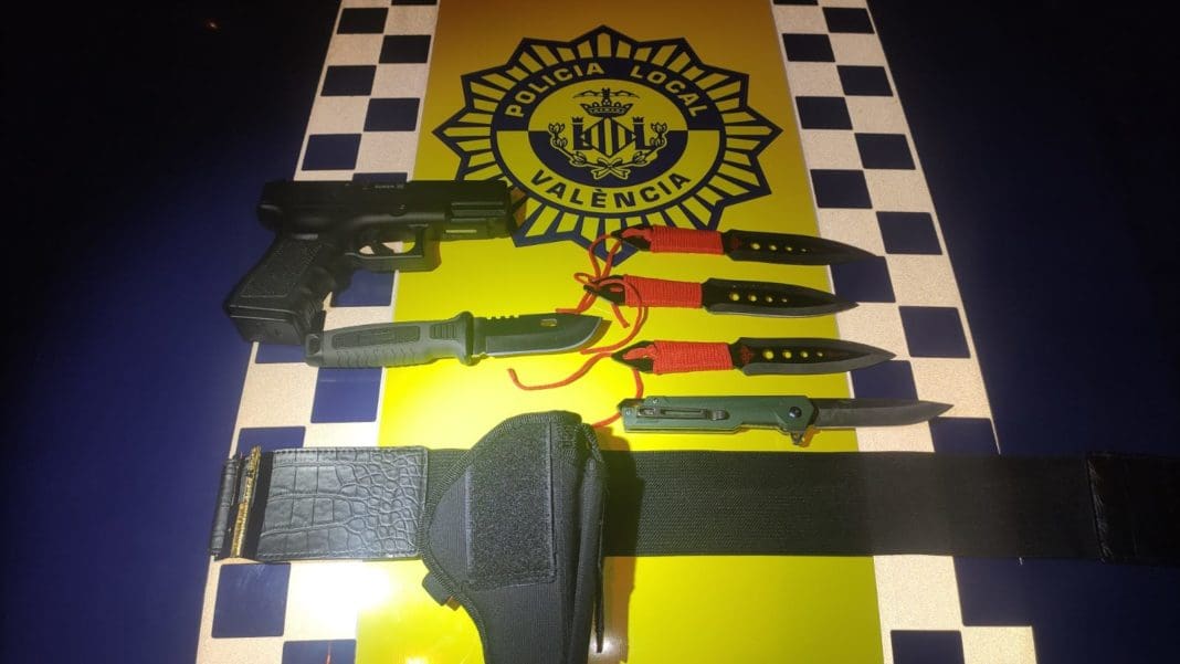 Según ha informado la Policía Local, en el momento de su detención este hombre llevaba, además del arma -una réplica de una pistola Glock-, varios machetes y navajas