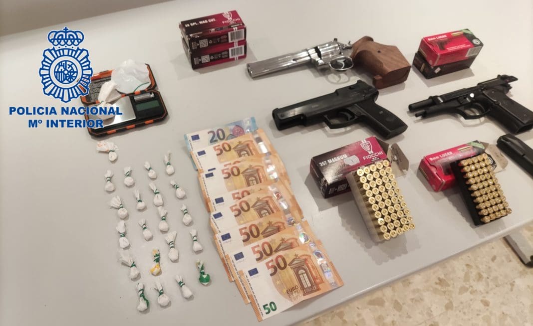 Así mismo, a dos de ellos también se les imputa un delito de blanqueo de capitales. Se han intervenido 17 gramos de cocaína fraccionados en 22 dosis, 420 euros en efectivo, una báscula de precisión, dos armas cortas de fuego real, dos armas de aire comprimido y gran cantidad de munición.