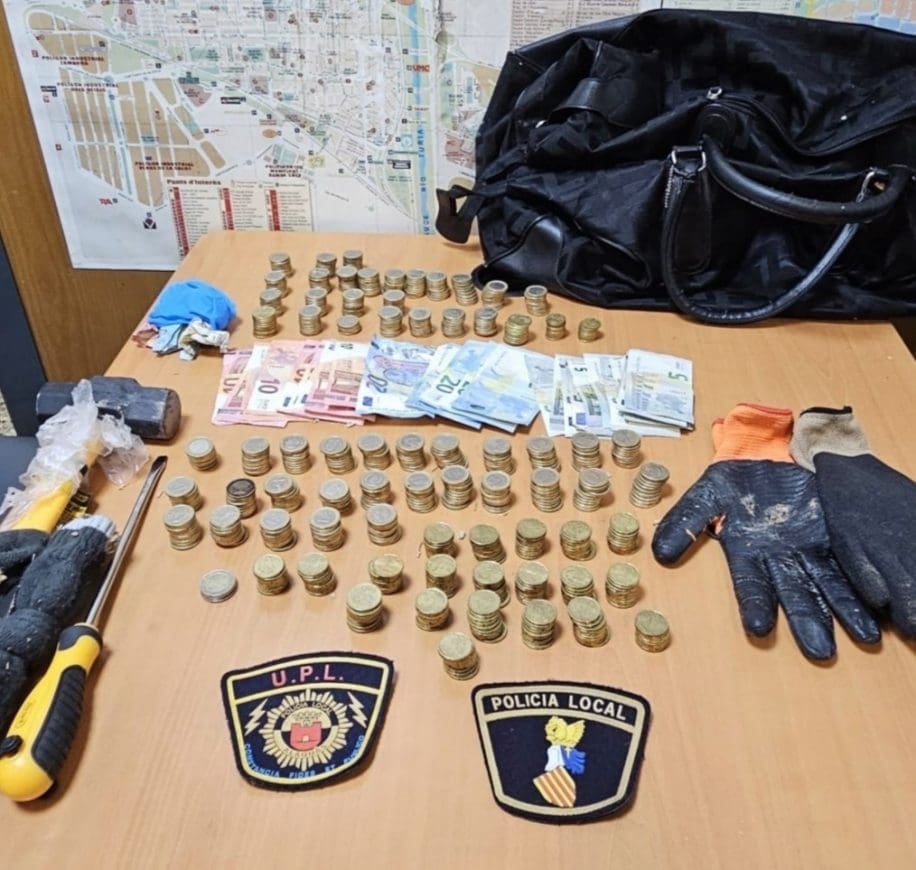 Tras recabar datos sobre la posible identidad de los autores, agentes de la Policía Local de Alaquàs localizaron en las cercanías del local donde se había producido el robo una mujer que al ser identificada portaba más de 500 euros en monedas de 1 euro así como distintos útiles empleados habitualmente en este tipo de hechos delictivos.