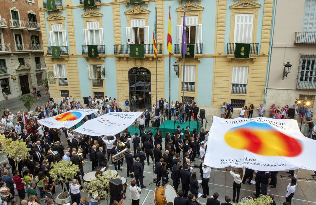 La Diputació de València ha reunido este lunes en la plaza Manises a 250 músicos para celebrar la llegada del 9 d’Octubre, en el marco del programa de actividades de la corporación provincial para conmemorar el Dia de la Comunitat. Los músicos, pertenecientes a nueve bandas de Valencia y cuatro comarcas, han ocupado la plaza agrupados por instrumentos y han interpretado tres piezas bajo la batuta del maestro Juan José Navarro.