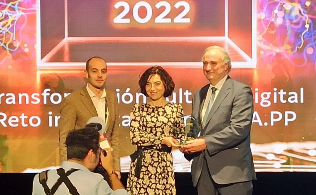 El jefe de servicio de Cooperación Municipal, Pedro Domingo, y la jefa de sección del área, Lucía Imbernón, recogieron este miércoles el premio CNIS 2022, en la categoría de mejor proyecto de consecución de los ODS, en La Nave de Madrid, lugar que ha acogido la doble jornada de la decimosegunda edición de los galardones del Congreso Nacional de Innovación.