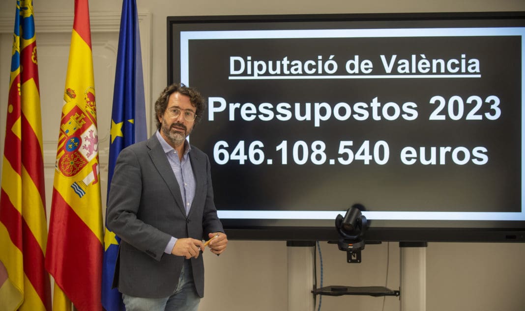 La Comisión de Hacienda provincial ha presentado las cuentas de la Diputació de València para 2023, con un presupuesto histórico de 646.108.540 euros, 54 millones más que en el ejercicio anterior, un crecimiento del 9%.