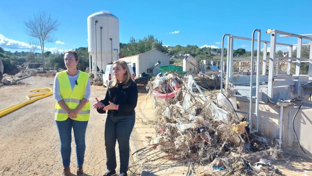 La vicepresidenta primera y responsable de Egevasa, Natàlia Enguix, ha visitado el municipio de la Hoya de Buñol para conocer los daños en la estación de depuración de aguas residuales, donde ha avanzado que la Diputación ayudará a los ayuntamientos a comunicar los daños a la Confederación Hidrográfica del Júcar (CHJ).