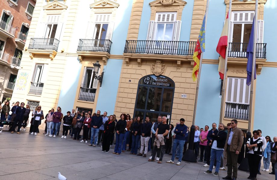 Por su parte, la vicepresidenta segunda, Reme Mazzolari y la diputada de Bienestar Social, Imma González, junto a trabajadores y trabajadoras de la corporación provincial también se han sumado a este minuto en memoria de las víctimas en plaza Manises, a las puertas de la sede de la Diputación, donde las banderas ondean a media asta como señal de luto.