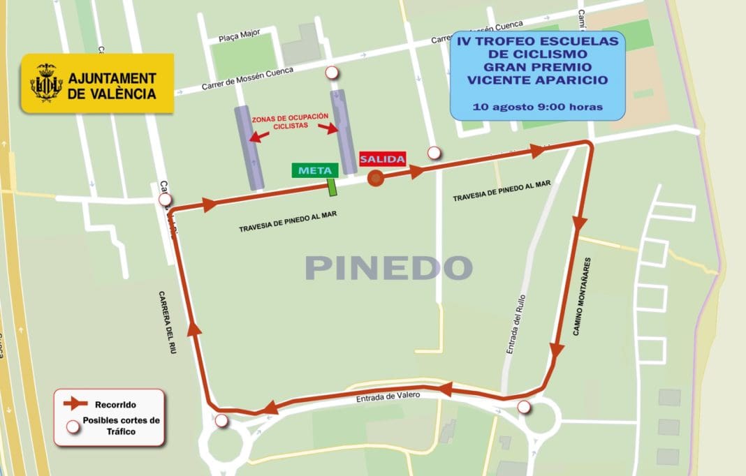 El Ayuntamiento de València ha previsto un dispositivo que regulará el tráfico y el estacionamiento para garantizar la movilidad de la ciudadanía con motivo del IV Trofeo Escuelas de Ciclismo Gran Premio Vicente Aparicio, que se celebrará este jueves, 10 de agosto, de 9:00 a 12:00 horas en Pinedo.