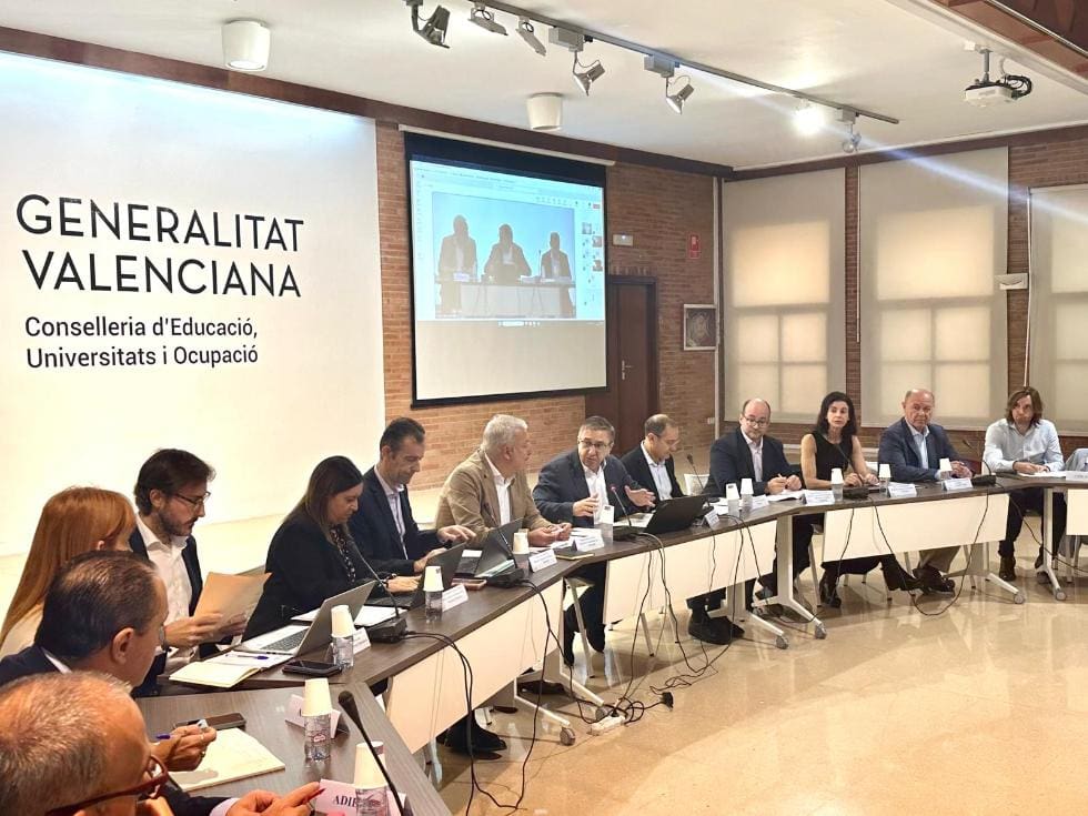 El conseller José Antonio Rovira ha mantenido una reunión con sindicatos de la Mesa Sectorial, sindicatos de la enseñanza concertada, Educación y Gestión, FECEVAL, ACADE, UCEV, Asociaciones de directores, sindicatos y asociaciones de Inspectores, confederaciones de madres y padres y Federación Valenciana de Estudiantes para trasladarles las medidas adoptadas por la Conselleria tras la DANA.